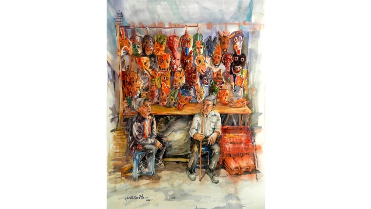 Pintura de caballete creada en acuarela.