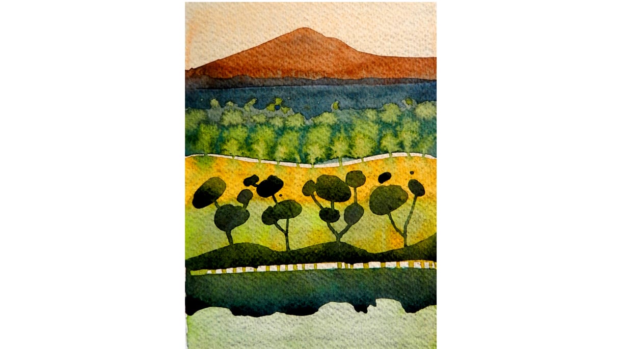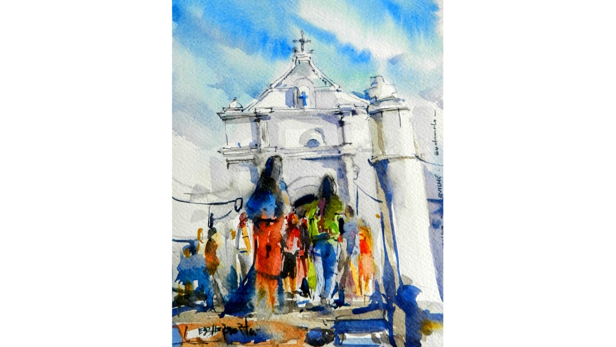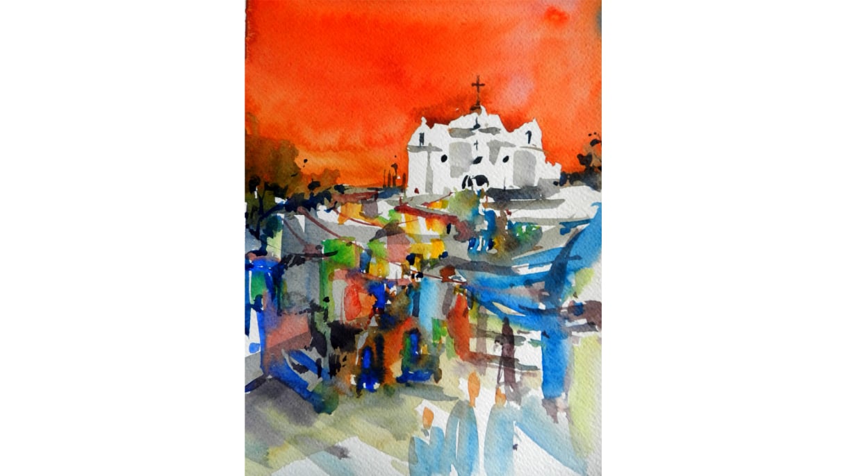 Watercolor course, where you learn techniques of watercolor, application, composition, and theory of color.